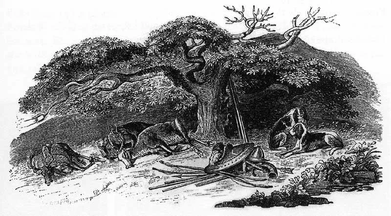 (First) A tail-piece vignette drawn by John but cut by Thomas, for Somervile's The Chase (1796).